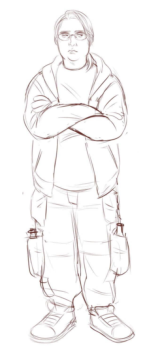 Cynic is an overweight 20-year-old with a cleanly shaved face and ash-blond hair gathered in a ponytail. It's worth noting that even though solidly chubby, he's not US-level morbidly obese and can move absolutely freely. He's a proper nerd and the biggest challenge in creating his image may be going beyond the cliches of “the computer guy” from dozens of shows.